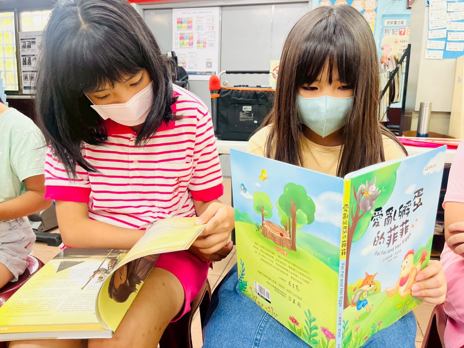 在溫馨的說故事時光裡,孩子們全神貫注,積極回應情節,展現強烈的學習熱忱。許多孩子拿著繪本反覆翻閱、熱烈討論,流露出對閱讀的濃厚興趣。